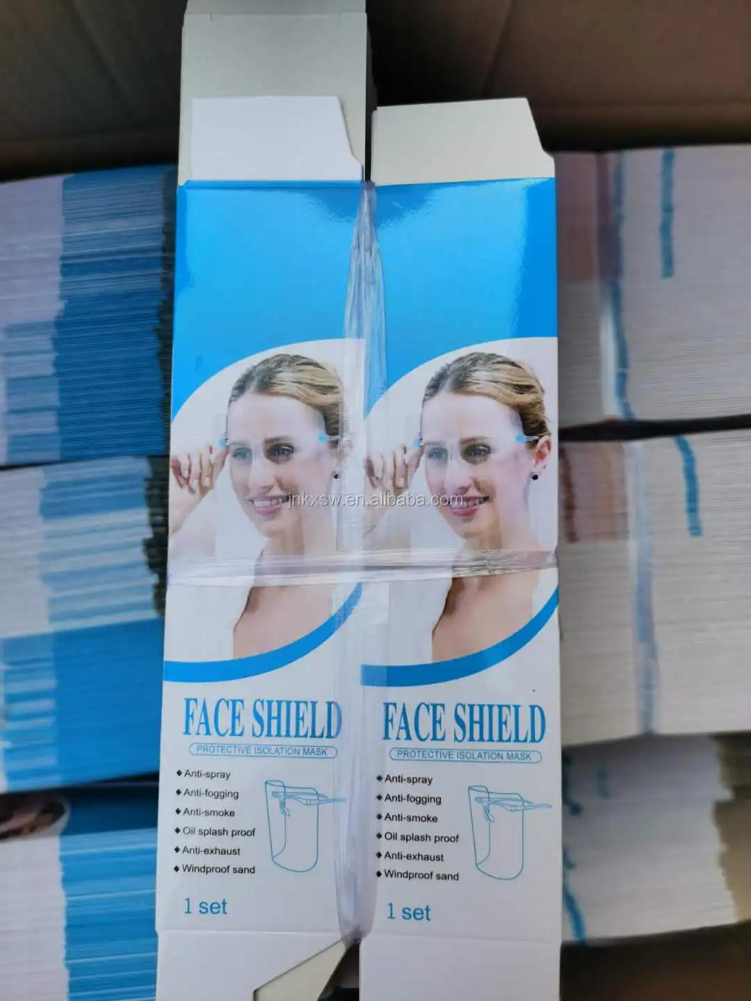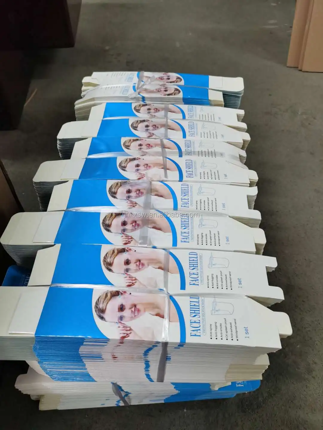 face shield color box. | 1000pcs per cartoncarton size:56*34*28cm G.W.:16.5kg N.W.:15.5kg. |