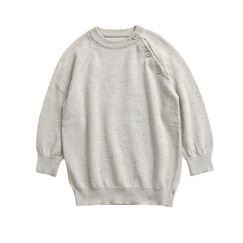 Baby Kids Pullover Sweater Coat Toddler Girls Clothes Nature Cotton Gray Drop Shoulder Fleck Knitted Sweater