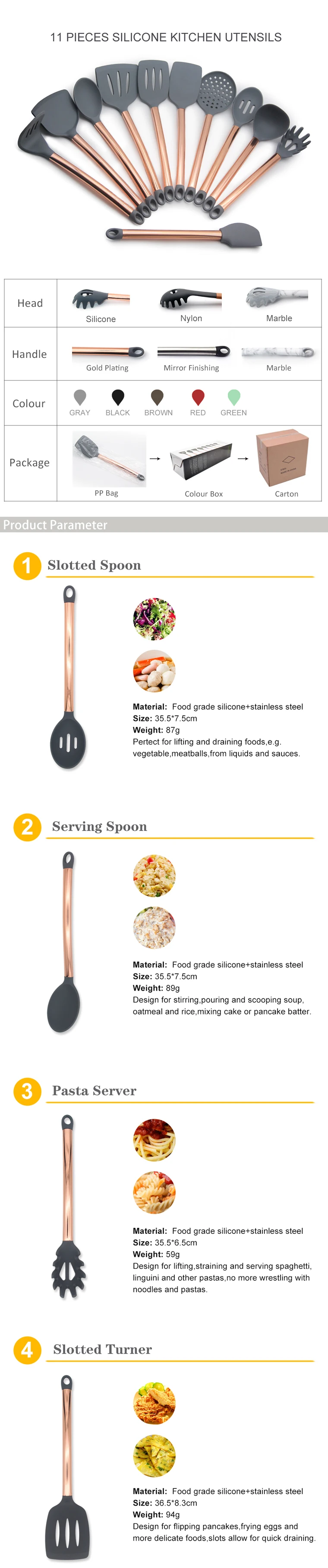 The set | slotted spoon/serving spoon/server/slotted turner /ladle/ skimmer/small turner/turner/slotted turner/musher/spatula |