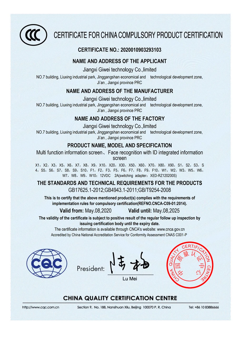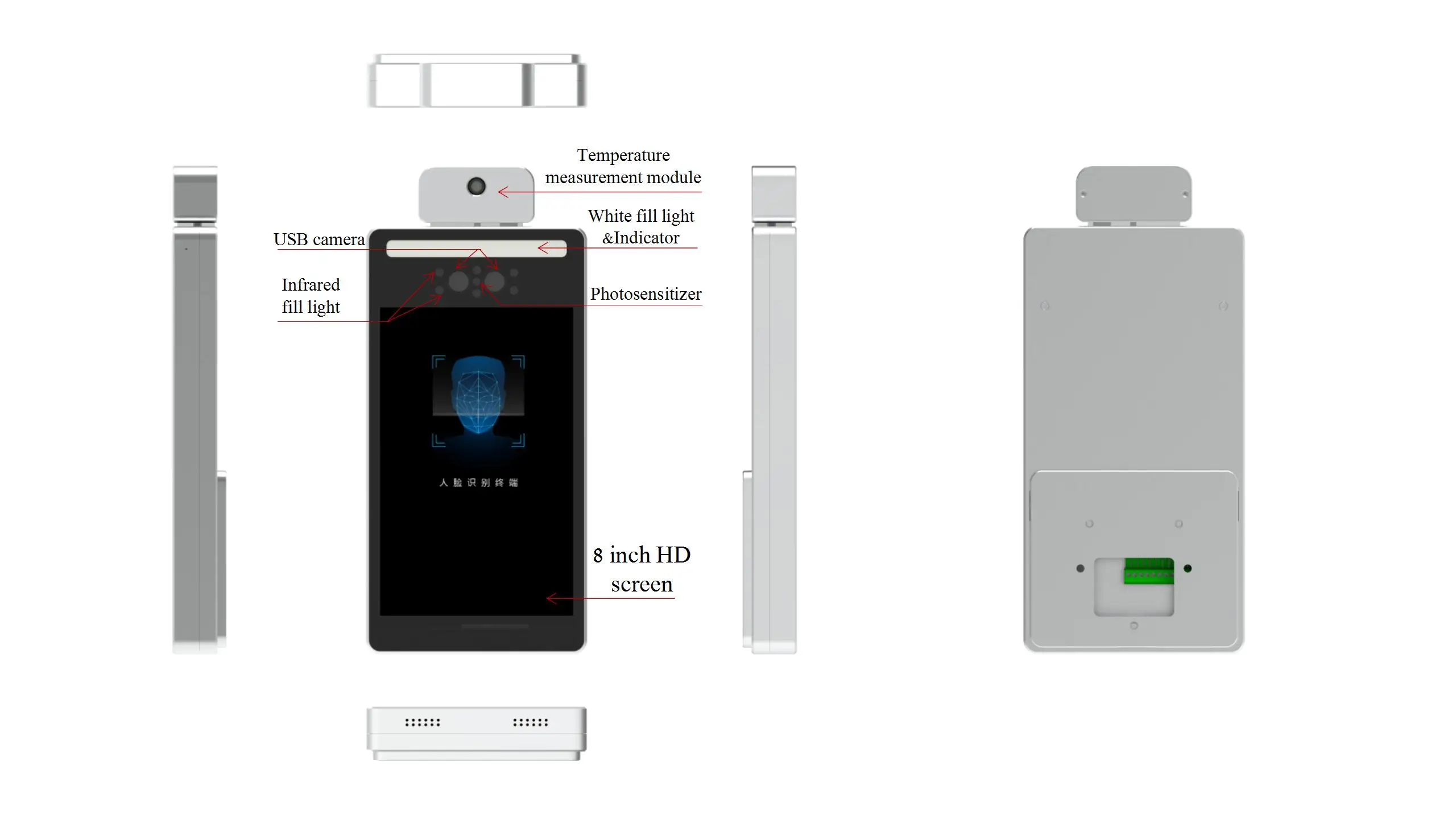 Human-machine interaction | Display | 8 inch, full view angle, 170°IPS LCD screen,resolution 800*1280 | 8 inch, full view angle, 170°IPS LCD screen,resolution 800*1280 | ||