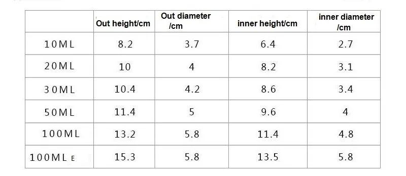 Capacity: | 10ml 15ml 20ml 30ml 50ml 100ml |