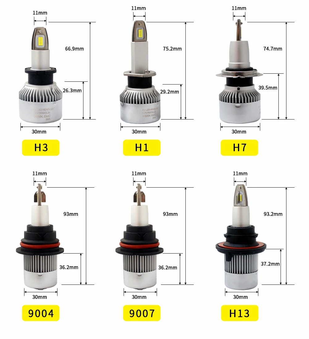 H1, H3, H4,H7, H11,H13,,9004, 9005, 9006, 9007
