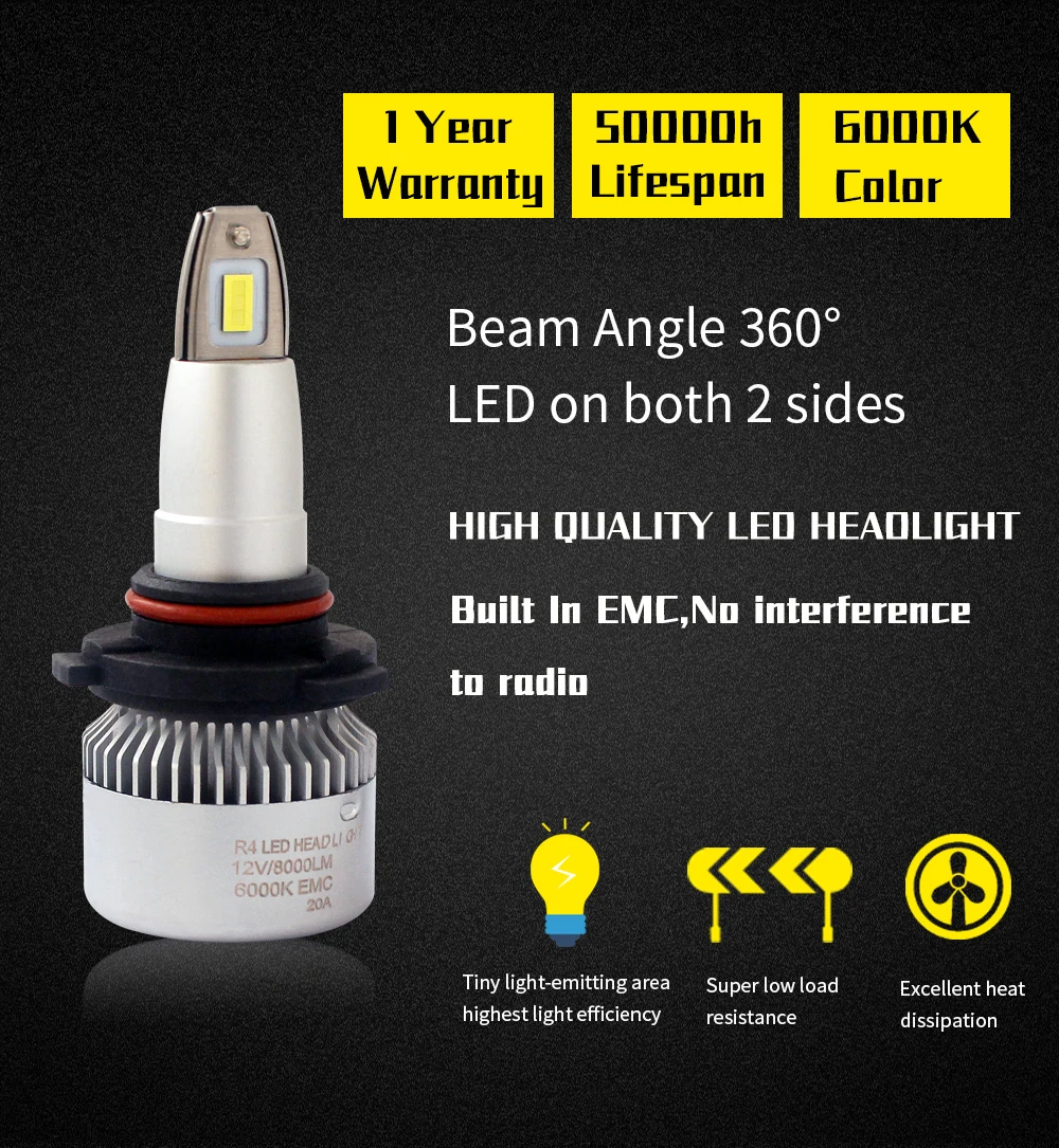 Hot quality SUPER MINI SIZE LED kit 80w bright R4 headlight H7 H4 9005 9006 880 8000lm Automotive headlight