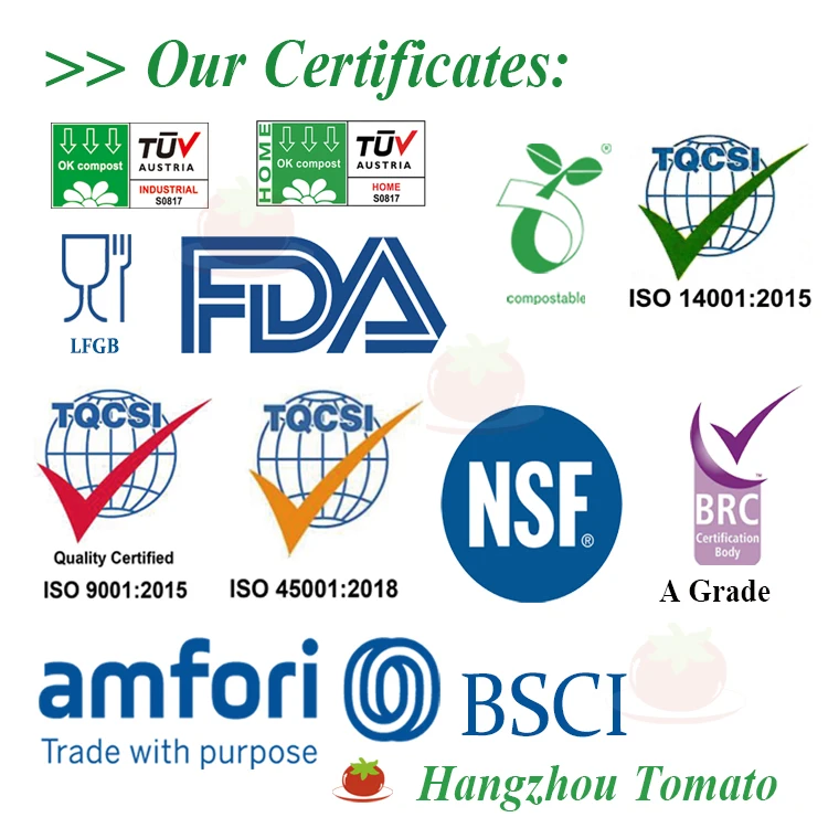 no-toxic. Our products are made based on international health standards and environmental standards, the products had have passedLFGB, OK-compost certification,EN13432,ROHS and our factory had pass BRC, NSF, BSCI, ISO9001,ISO14001,ISO45001.