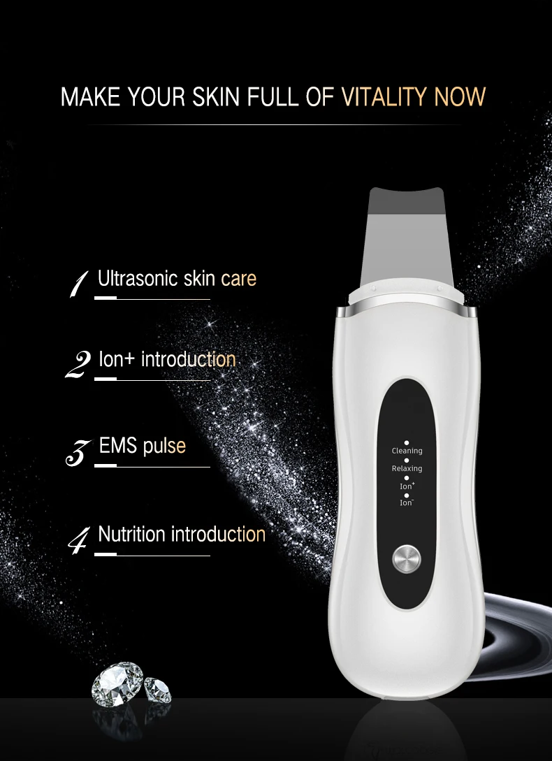 to metabolize products,so as to achieve clean effect. Using a special shovel type probe, can effectively penetrate into skin under 5-8 cm, let beauty liquid become thin,through supersonic vibration atomization, the dirt and excess sebum to emulsification,jam cosmetics residue,in the pores of sweat and emulsion, with a splash eliminated,the cleaning effect more quickly and effectively.