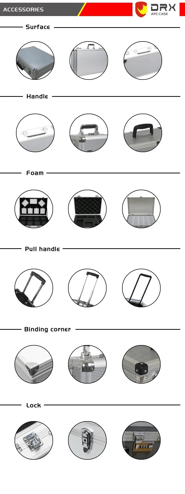 Accessories | Metal corner protectors, Metal lock, Padded metal handle and EVA foam; |