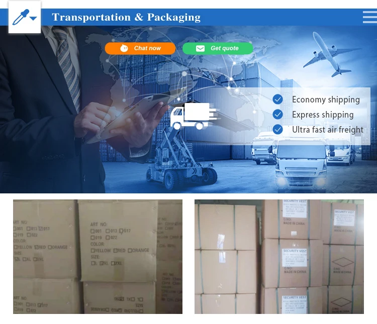 1.Factory direct sales:We are a manufacturer not a trading company! 2.You can choose from over 300 types of reflective vests in stock. 3.As long as you send a photo, we can customize according to your picture of any style you want.There is a printing workshop in our factory. 1000 pieces of vest printing can be delivered on the same day you place your order. 4.Perfect quality control:Fine workmanship&Attention to detail&Professional quality management team 5.Reply within 10 minutes. 6.We are CE and ANSI certified, and the reflective fabric we use meets the industry standard EN-20471! 7.We have a lot of experience in American, European,Middle East and Southeast Asian market.Every year, we attend exhibitions in the United States and Dubai, meanwhile we definitely go to the A+A exhibition in Germany.