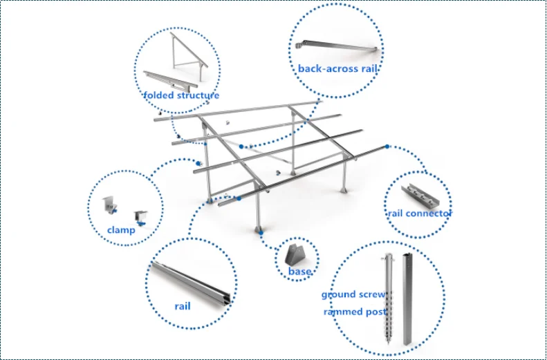 Solar panel pv ground installation structures CY-ZJ02 is a-round steel ground racking system which has 3 types of foundations(ground screw, rammed