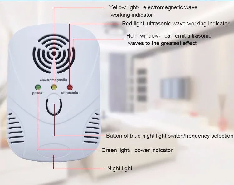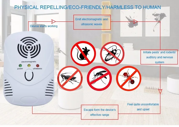 Working way | Using electromagnetic and variable ultrasonic waves to repel pests and mice |