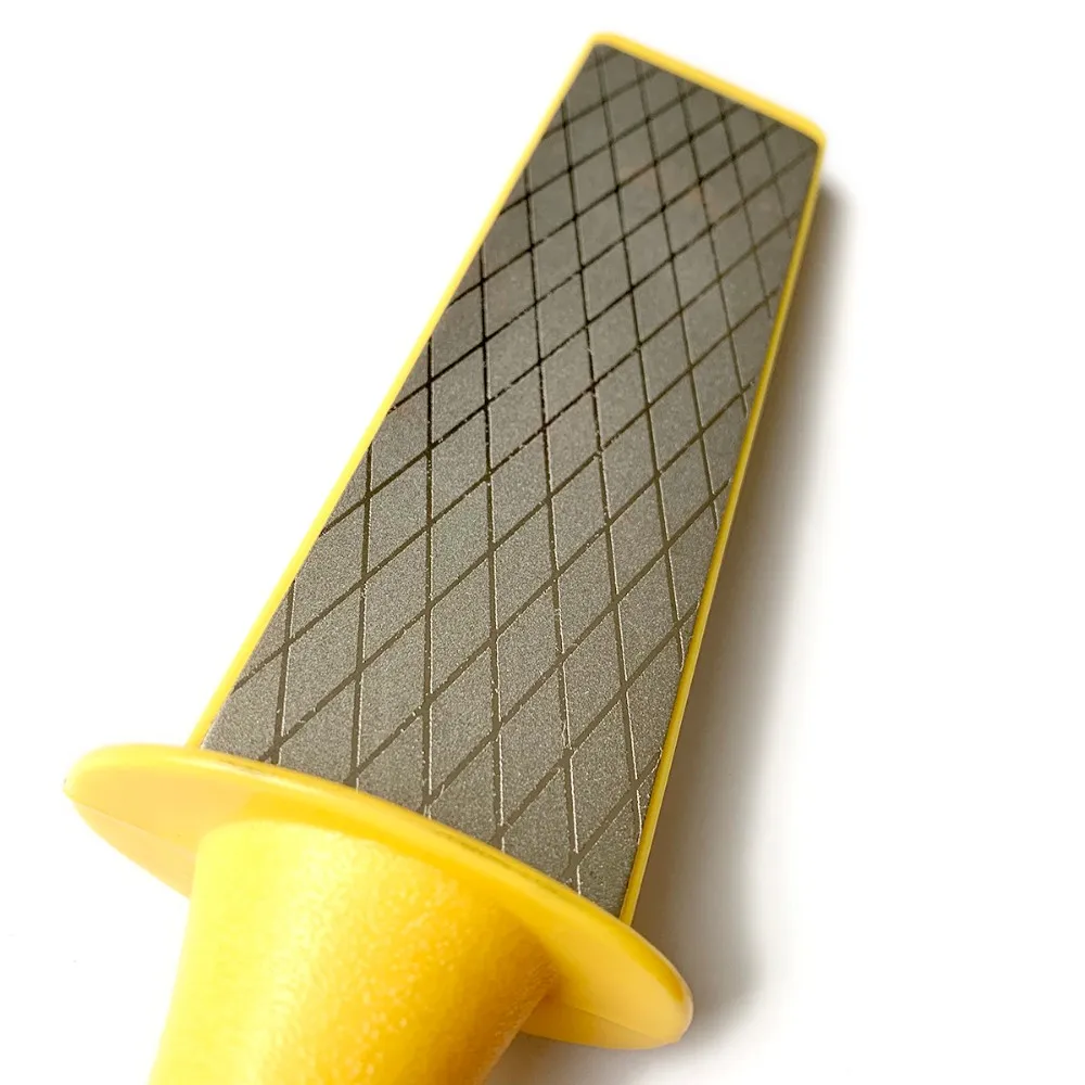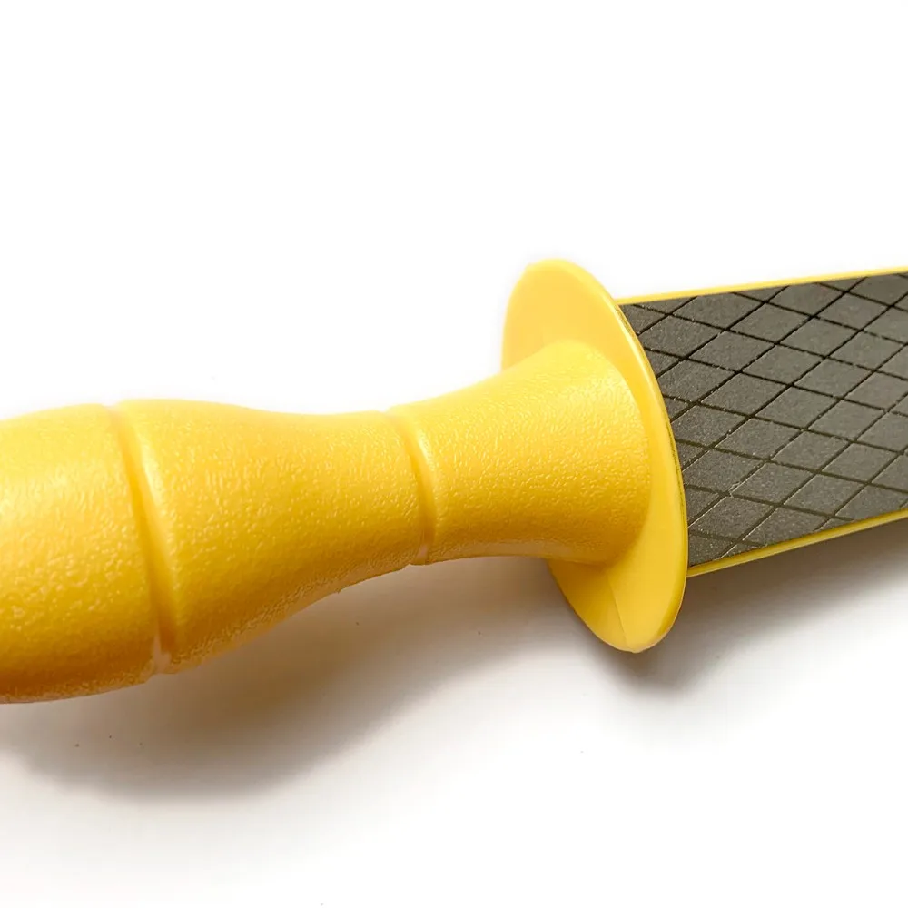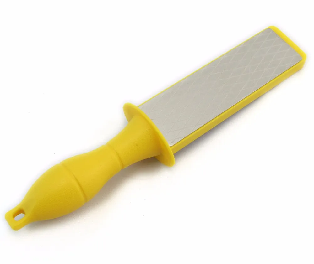 · 2 sided diamond powder coated sharpener for effective and faster sharpening of tools especially the harvesting sickles.Can be used for sharpening other tools and domestic knives.