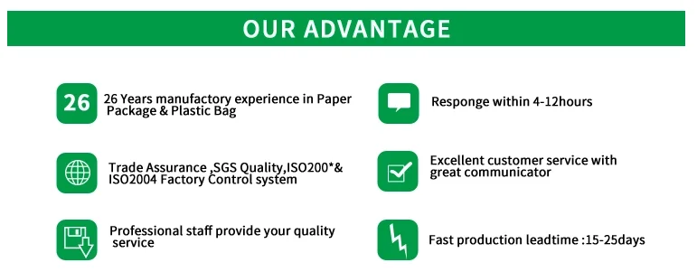 Q2:How can i get a fast and correct quotation from you ? Quotation information need details as followings : 1. Box patten 2.Box Size 3.Bag Material 4.Printing colors 5.You design in PDF or CDR,Al format 6.If not clear you want ,please contact us ,we will offer you proffesional suggestion for you .