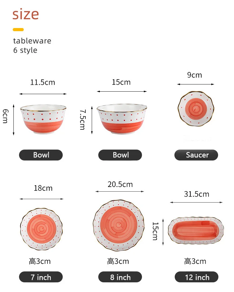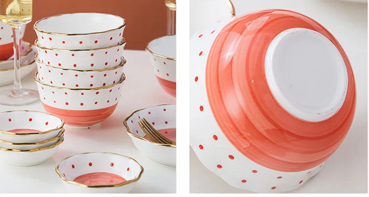 Theme | Household Japanese polka dot design ceramic orange glaze bowl plate steak plate |