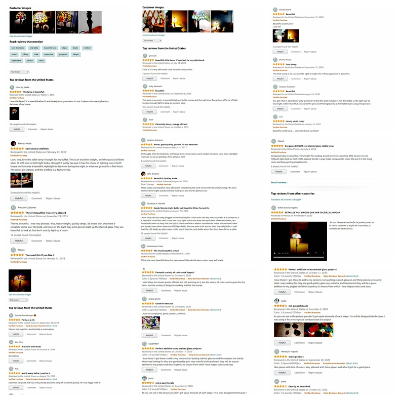 Q3.Is the lampshade glass or plastic? The lampshade is made of glass, because it is cut from a large piece of glass and welded with tin, Because the area of each piece of glass is very small, the sound of knocking on the glass changes. But his material doesn't change