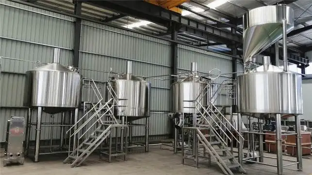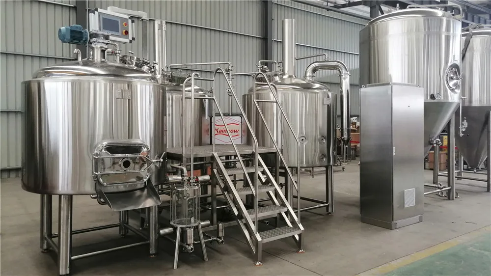 3. Cooling Unit Glycol water tank -Material: Inside wall, SUS 304, 3mm,outside wall, SUS 304, 1.5mm -Insulation, PU, 100mm -Thermowell, 8mm -Temperature sensor, Model: PT100 -Water supply piping: ø32mm -Drainage piping and butterfly valve, ø32mm Including all pipes, fitting, insulation materials Cooling compressor -Scroll copeland type compressor -Capacity: 3-20hp according to the capacities -Refrigerant: R404A | 4. CIP system -Alkali tank -Sterilization tank -Shell: SUS304; T 2mm -Interior Finish: 0.4~0.6μm/Mirror Polishing -Pipelines and valves -CIP Pump: CE/UL Listed -CIP reinforced hose Optional Heating Elements Controller Tank added | 5. PID/Siemens PLC system -Mashing temperature setting -Boiling temperature setting -Lautering temperature -pumps speed controlling by VFD, DANFOSS -Mash agitator speed controlling by VFD, DANFOSS -HLT pump controlling -Fermentation temperature setting -Cooling system Controlling Customized high quality stainless steel beer fermentation tabk brewery equipment |