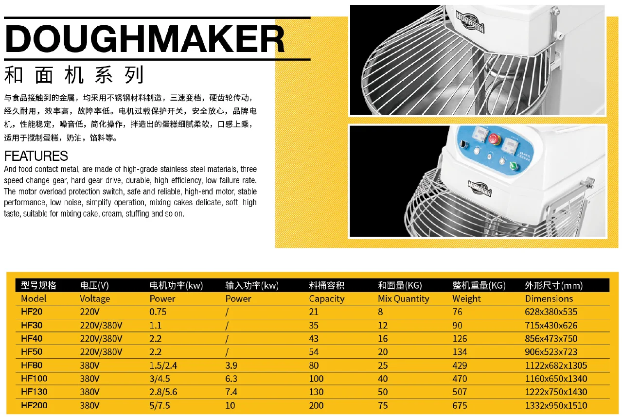 Specifications of dough mixers | ||