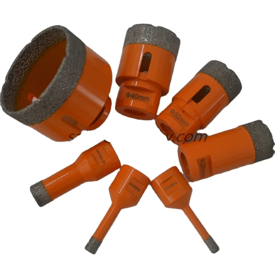 1) diamond core drill bit Suitable for cutting, dry drilling various hard Non-ferrous materials, such as marble, granite, glass, ceramic, hard concrete and brick
