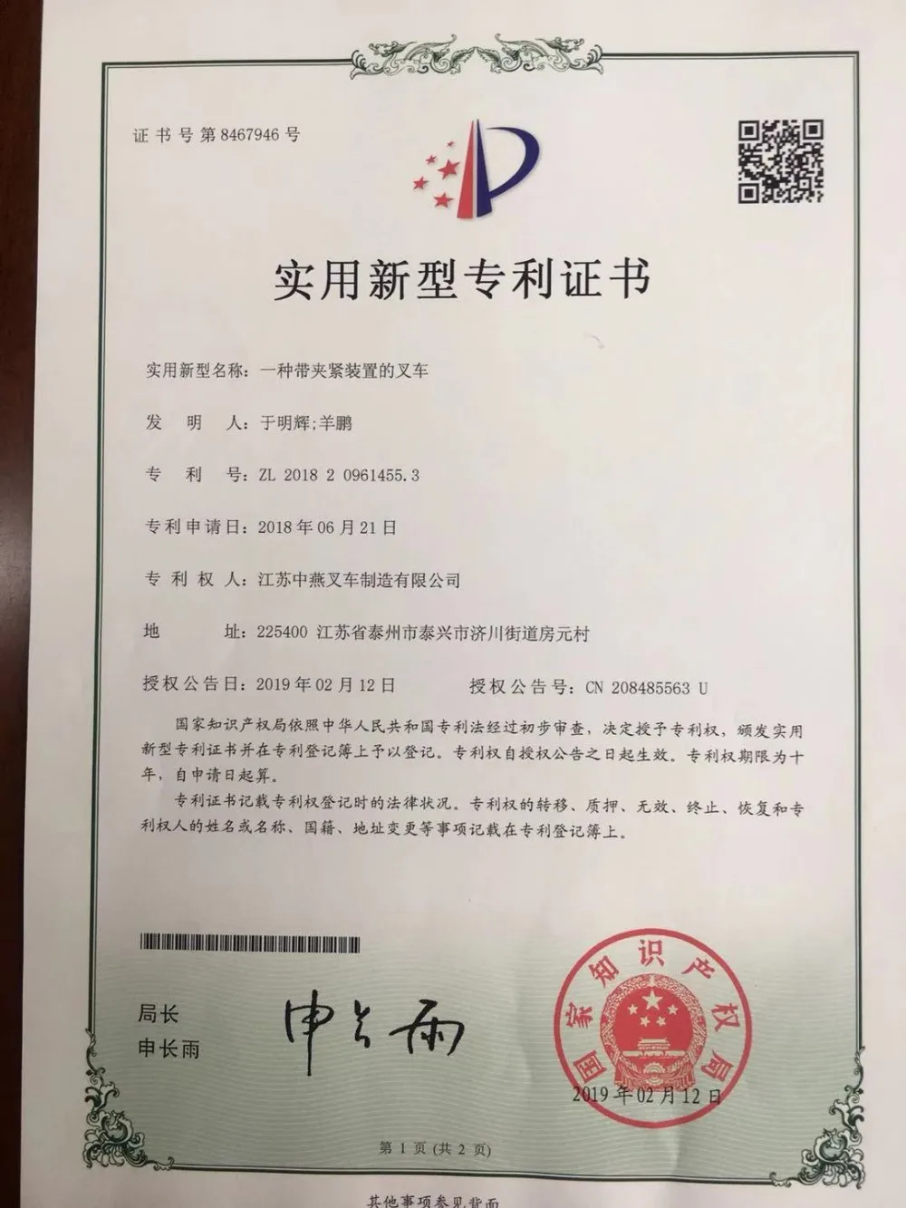 Jiangsu Zhongyan Forklift Manufacturing Co., Ltd. was established in 1997, covering an area of 21,800㎡ and owing a registered capital of 40 million RMB. It is a high-tech environmentally friendly enterprise specialized in research, production and marketing, and a cooperative company with the logistic department of national army for handling equipment. It is located in China historical and cultural city----Taixing, the north of Yangtze River delta.