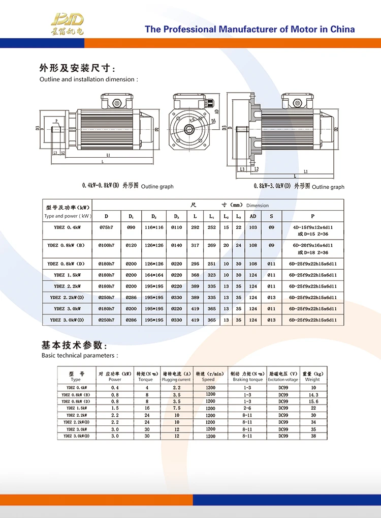 The main products are as follows: ZD, ZDY, ZDS, ZDR series of conical rotor brake motors; YEZ series of construction machinery motors; YDEZ, YZZ series of electromagnetic brake motors; YDEZ series of three-in-one drive; BZD, BZDY series of explosion-proof motors; YBEZ and YBEZY series of explosion-proof motors for mines;YBX3 series of high-efficiency explosion proof three-phase asynchronous motor; YHZ series of crane motors; YZR3 series of metallurgical and crane rotor winding energy-saving motors; AC permanent magnet servo motors .etc.