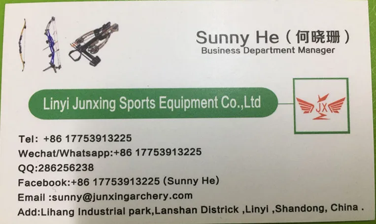 Linyi Junxing Sports Equipment Co. Ltd. has been dedicated to manufacturing of Crossbow, Compound bow and Recurve bow for over 10 years. We have our own engineering team,lots of machines, moulds and equipments and workers who have the same enthusiasm.