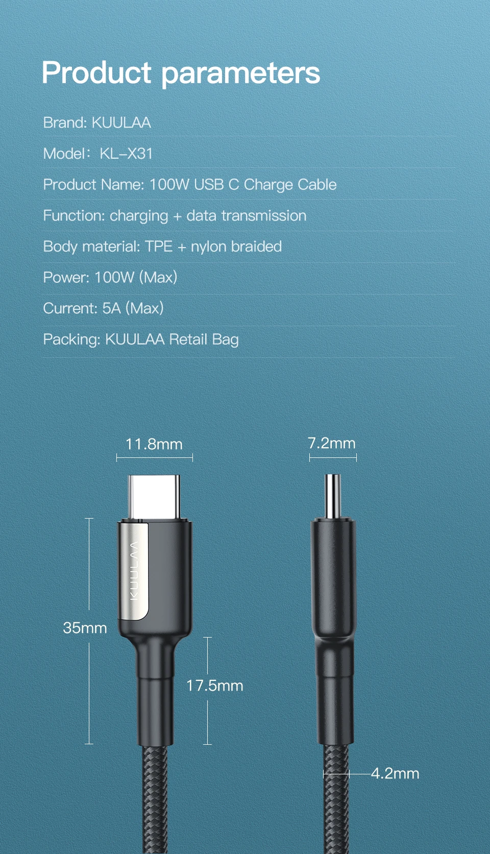 Function | charging + data transmission + audio&video transmission | ||||||