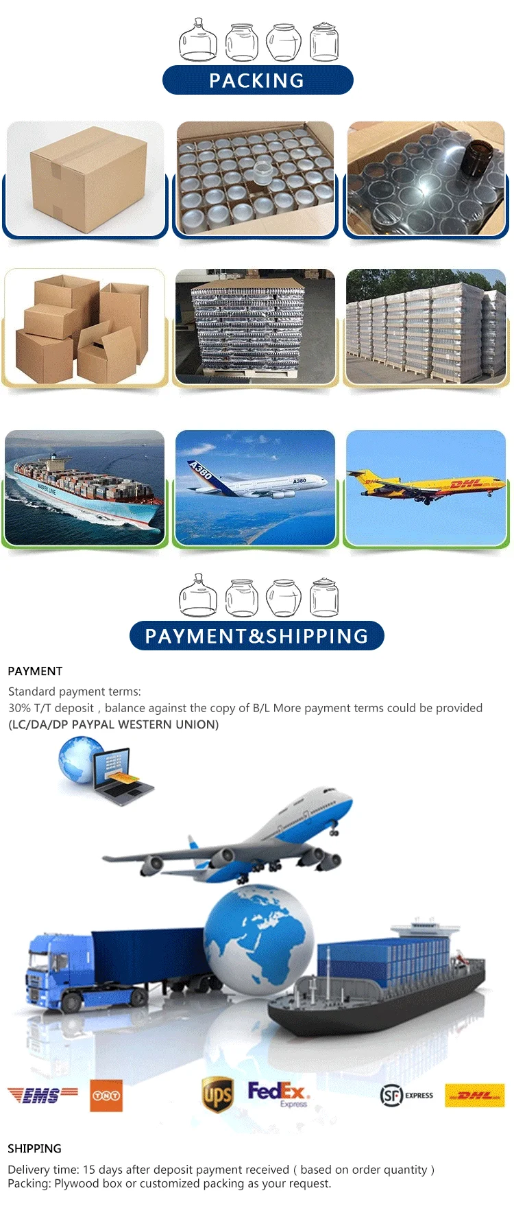 We are specialized is engaged in glass packaging design, manufacture factory.The company has a modern standard workshops and advanced automation ranks machine production line, strong technical force, perfect management system, product quality is reliable.