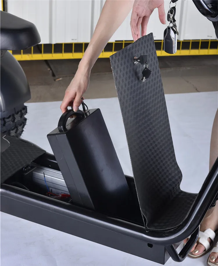 1.Front shock Suspension. 2.Rear shock Suspension. 3.Rear turn light and brake light, driving light. 4.LED screen shows battery/speed . 5.Horn. 6.Double Seat+Backrest. 7.Disc brake; oil brake. 8.One battery (not removable). 9.3 speed. 10.Drive forward/ automatically Backward. | 1.Motor:1000W brush-less motor. 2.Battery: 60V 12ah battery (one). 3.Load Capacity: 200KG. 4.Charging time: 4-6 hours. 5.Max speed: 35KM/H. 6.Range per charge: 36KM. 7.Tire: 18*9.5 inch . 8.Brake: front & rear oil disc brake. 9.Climbing Capacity: >18 degree. 10.Product size: 1950*950*800mm. 11. Package: Carton +Iron Package. 12.Net weight: 90KG. 13.Gross weight: 95KG. 14.Carton size:1990*950*750mm. 15.Container:12pcs/20',36pcs/40'H 16.Color:All color available. |