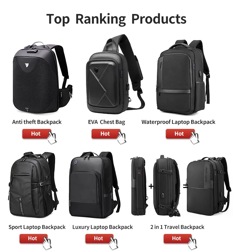 2021 ARCTIC HUNTER 2 in 1 Detachable Laptop Backpack 17 inch Laptop Custom Hiking Backpack Male Mochila waterproof backpack bag
