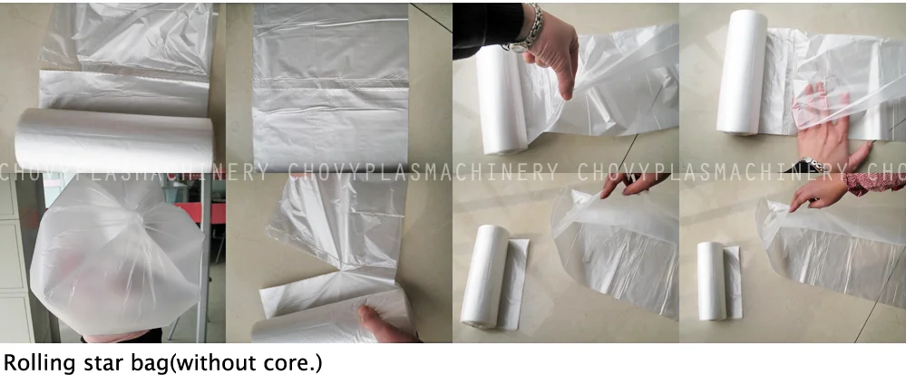 This machine is producing rolling bag.Also can make star bag,garbage bag,vegetable bag and table bag.Fully automatic exchange system can reduce the labour force,in the excellent servo driven system,it is the best choice for producing printed bag and blank bag.Easy for operate.