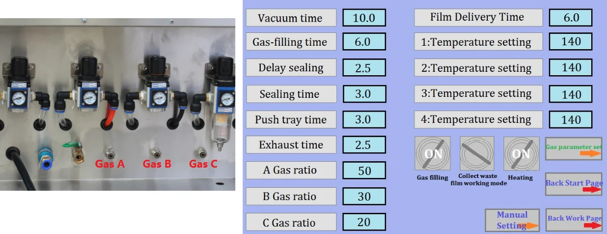 Function | Vacuum, O2/N2/CO2 mix and fill, seal | Vacuum, O2/N2/CO2 mix and fill, seal | |