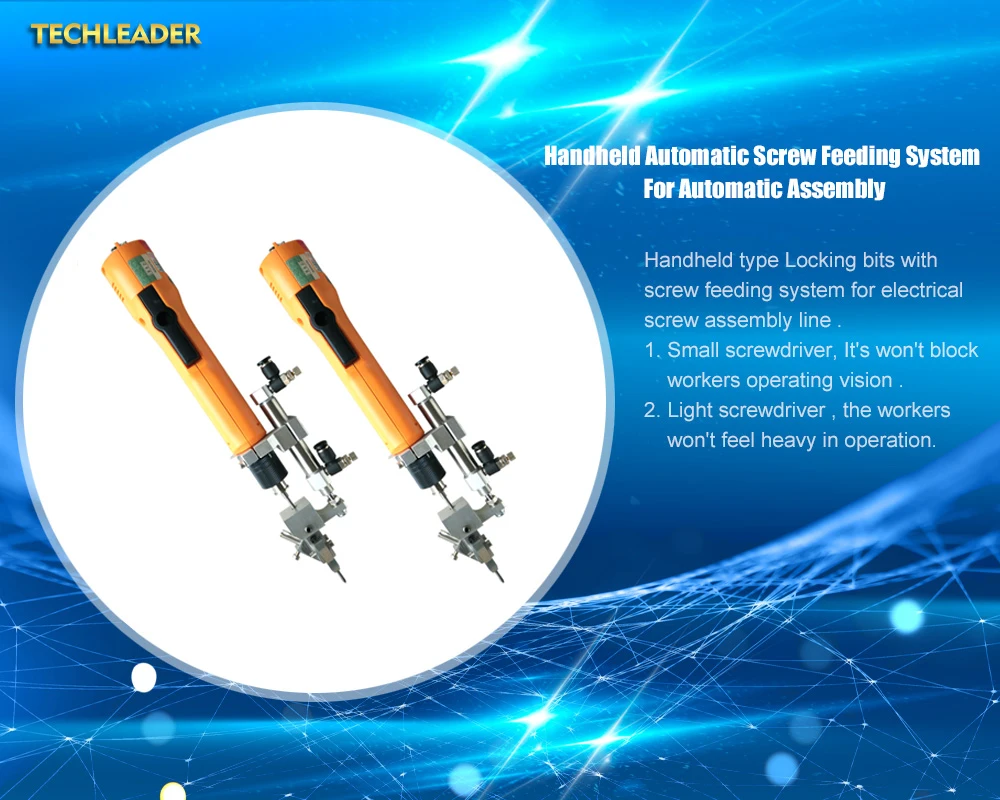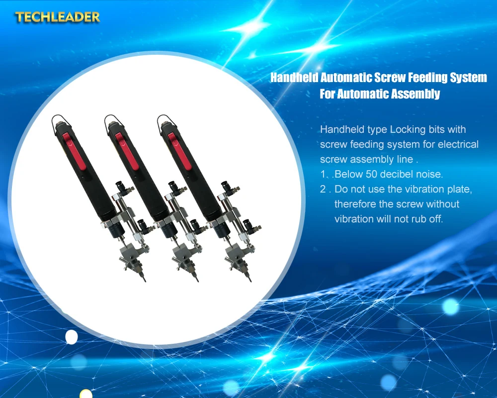 The machine is versatie and universal. The screw is sent to the screwlock head by air blowing. Just press the electric screwdriver bit to the unlocked position and gently press down to complete the lock task. It helps eliminating the repeated actions such as manual self-pickup the screws. At the same time, you can free up your hand to hold the product. It increased the working efficiency and save time as well as labor cost.