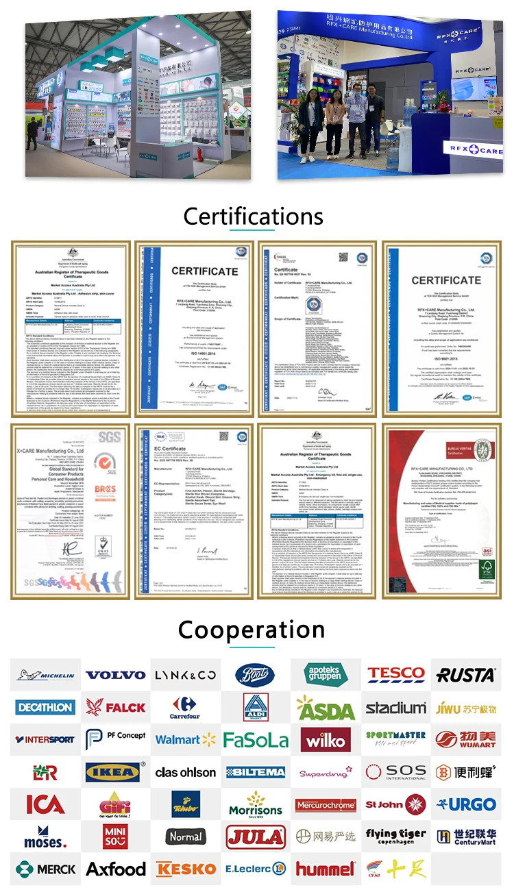 First aid dressing,10x12cm 1pcs | Burn dressing,40x60cm 1pcs | Burn dressing,60x80cm 1pcs | Elastic bandage,4mx6cm 2pcs | ||||