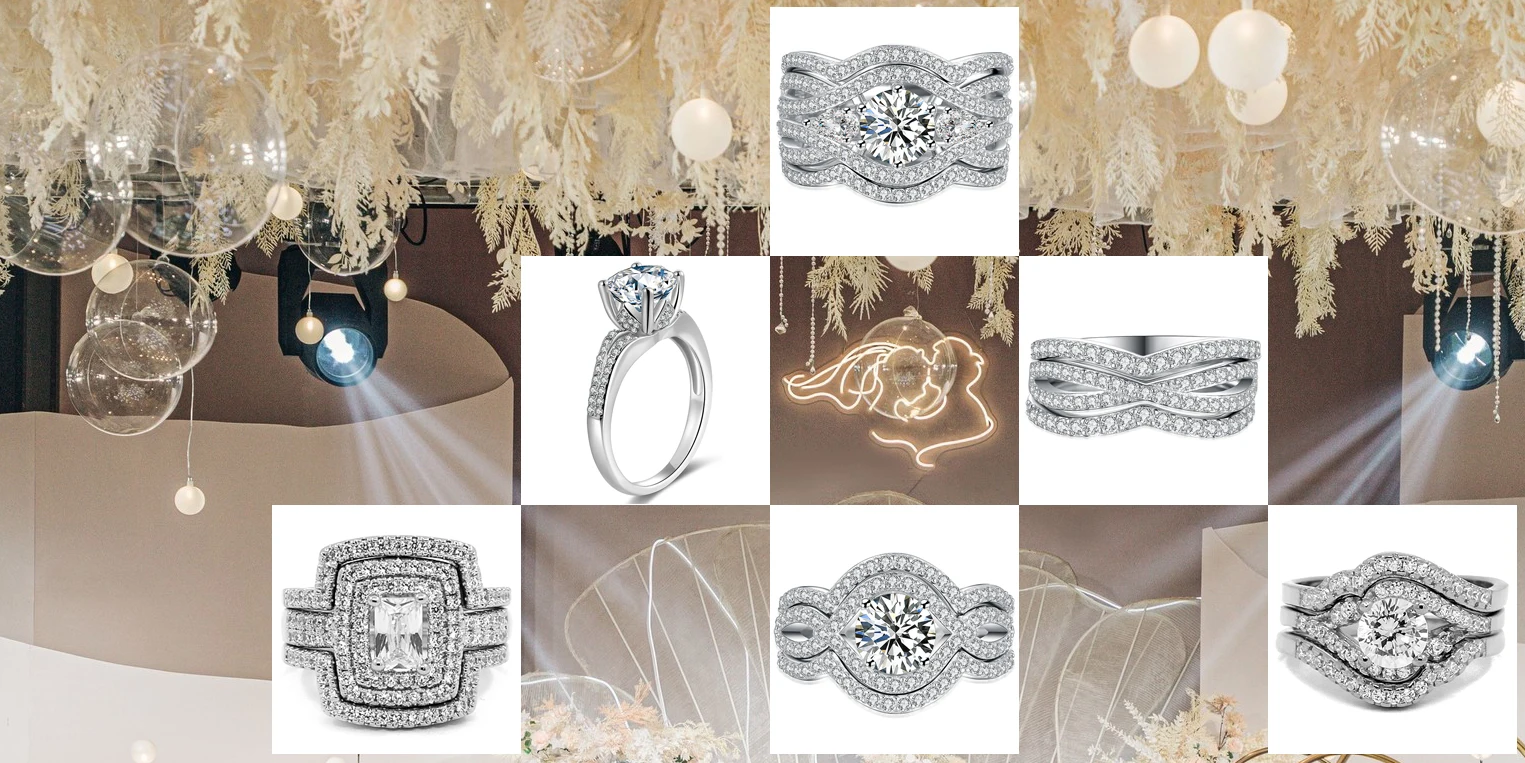 Wholesale solid silver jewelry 100% real 925 silver ring with CZ stones wedding and engagement rings set