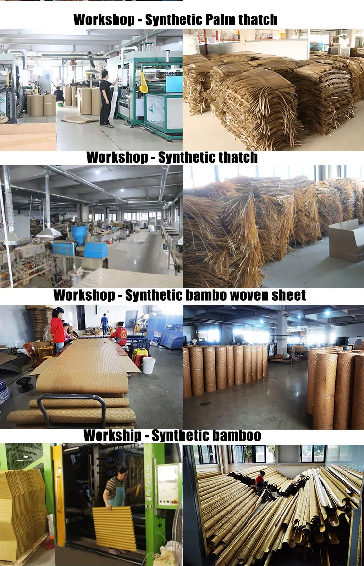 Hua Li Long is a professional and leading factory of synthetic thatch and synthetic bamboo in China, which was founded in 1994. Our factory cover an area of ​​nearly 10,000 square meters. We have engaged in production and research of nano plastics industry for more than 30 years.
