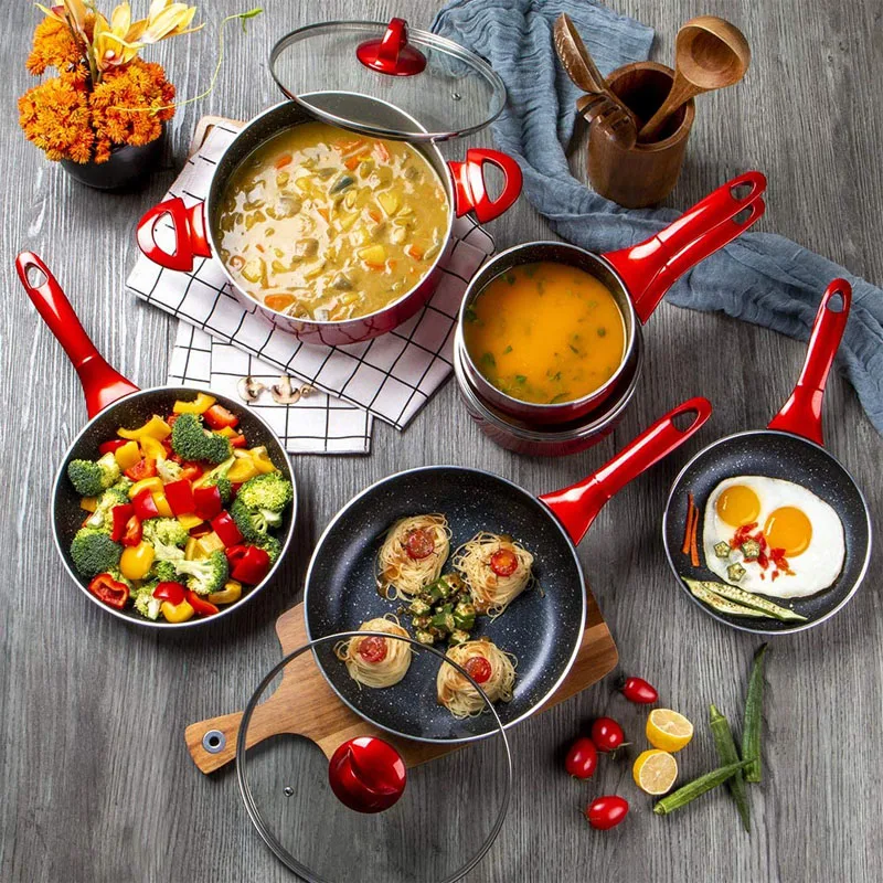 Products Description | wholesale aluminum Nonstick Pots and Pans Set with 10 pieces cookware sets |