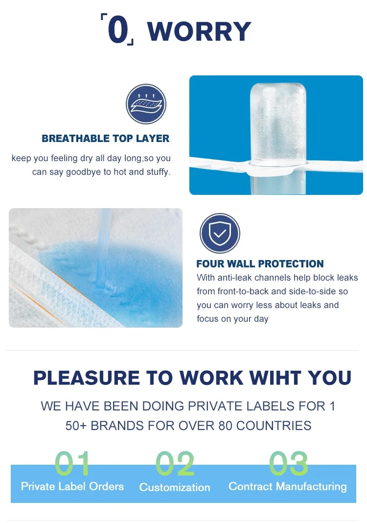 A:No problem,Customized Diaper&Sanitary napkin for adult or baby could be supported.Welcome to share your idea with us.