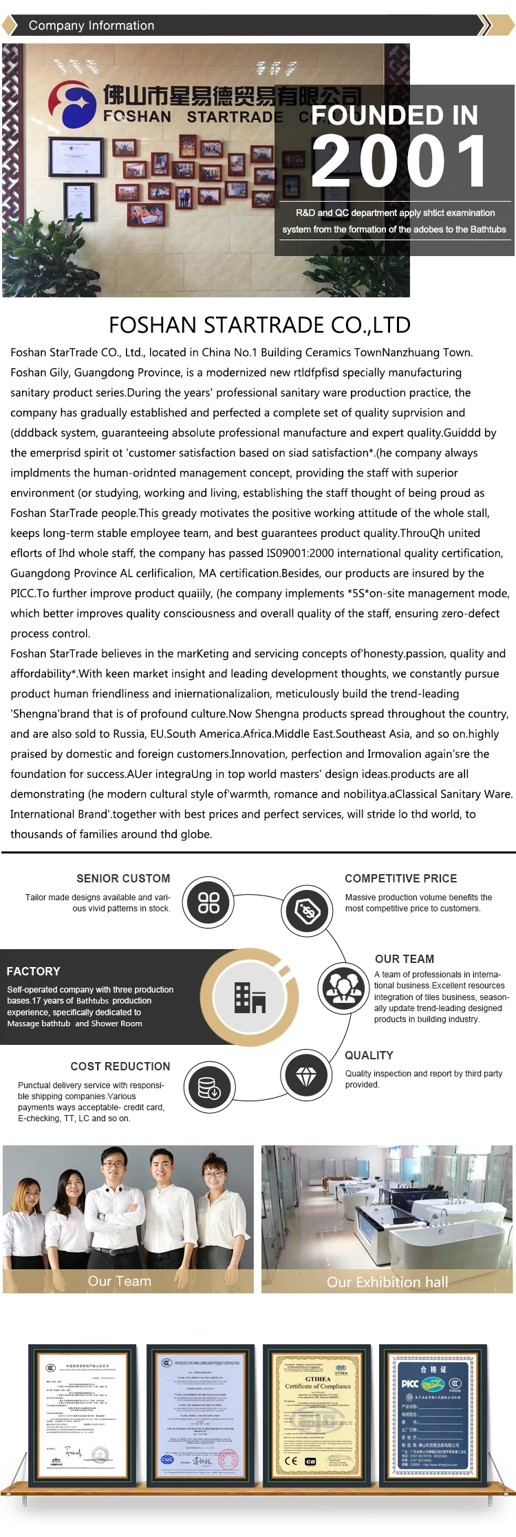 | Packaging | Carton box, wrapping film, 3mm PE foam. Each shower room will come with a wooden pallet. |