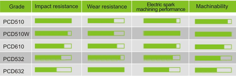 1.Grades selection needs consider 4 main factors including impact resistance, wear resistance, electric spark machining performance and machinability.