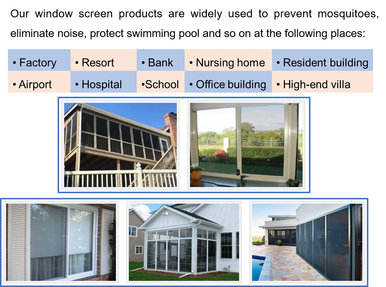 Applications | - Windows - Doors - Wall reinforced material |