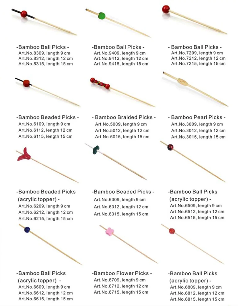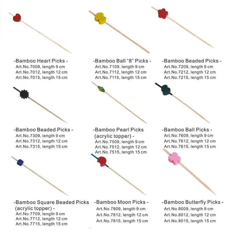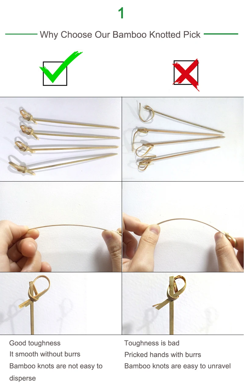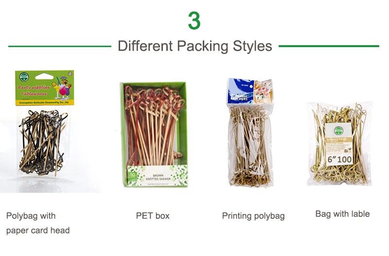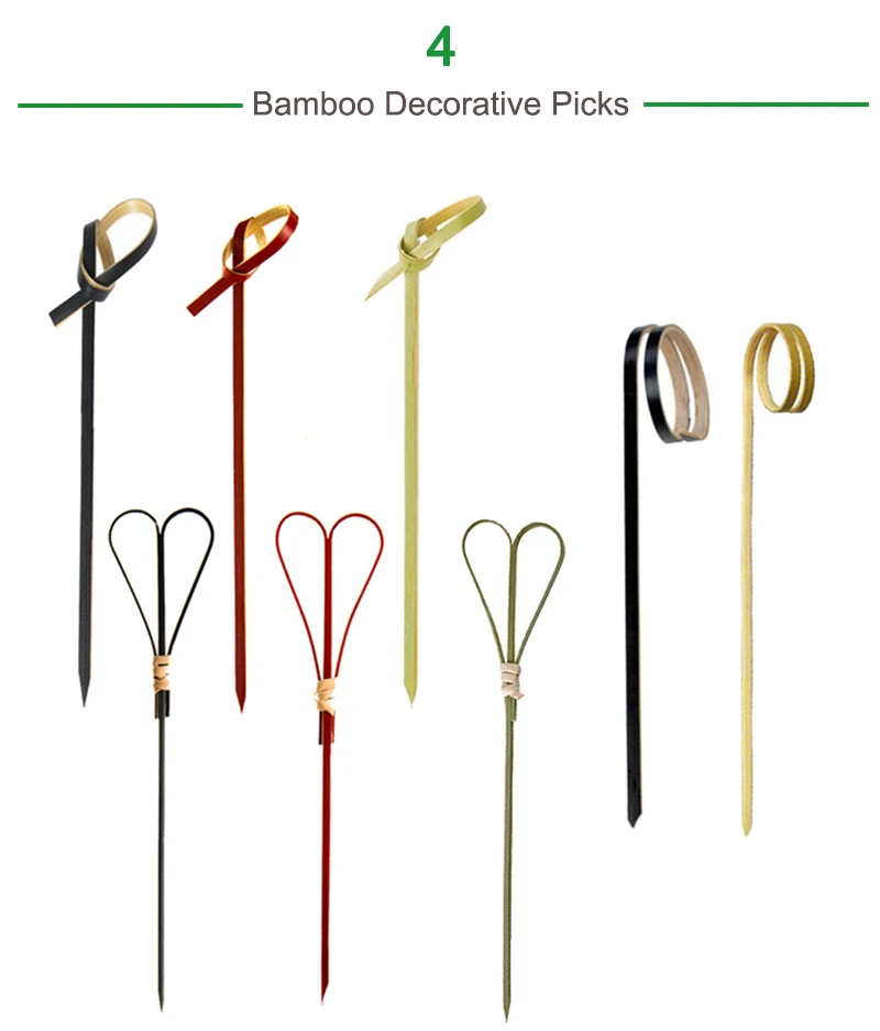 1000 Disposable Skewer Picks Biodegradable Knotted Natural Bamboo |
