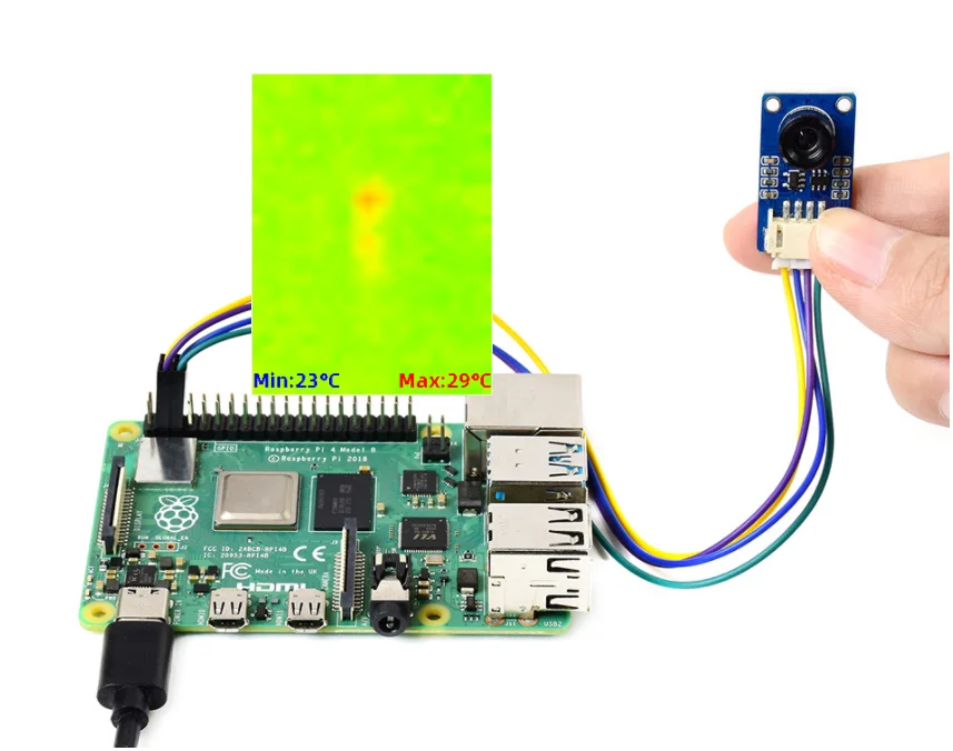The MLX90641-D55 Thermal Camera is a small size, non-contact, and low cost IR array thermal imaging camera, with 32×24 pixels. It will detect the IR distribution of objects in the field of view, turn the data into surface temperature of the objects by calculation, and then generate thermal images, for easy integration into miscellaneous industrial or intelligent control applications.