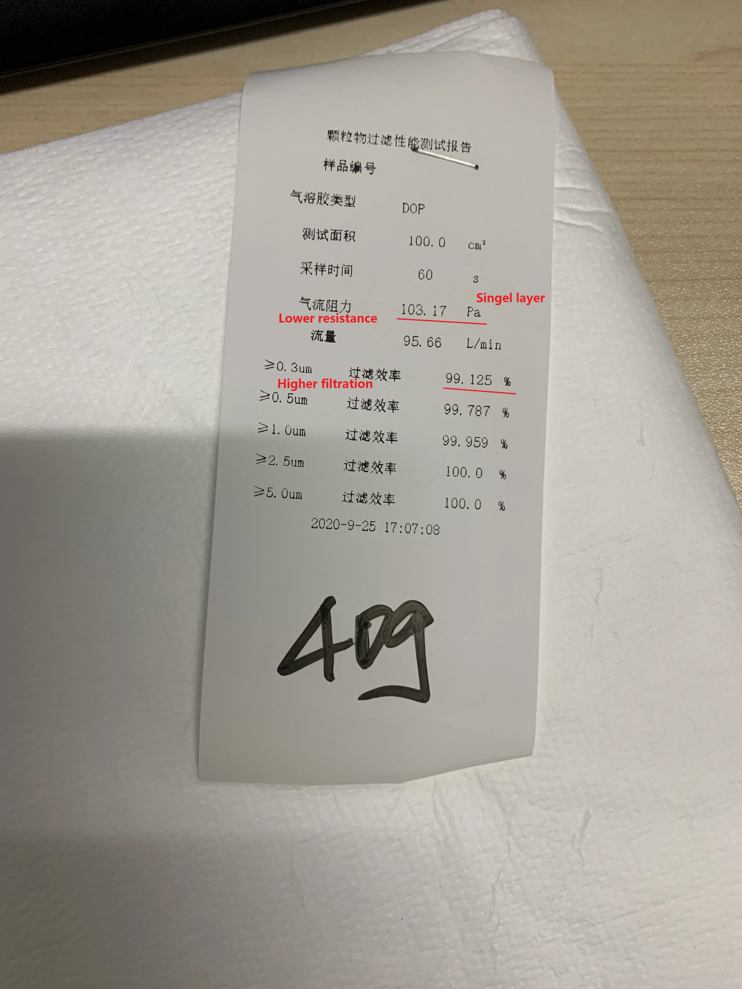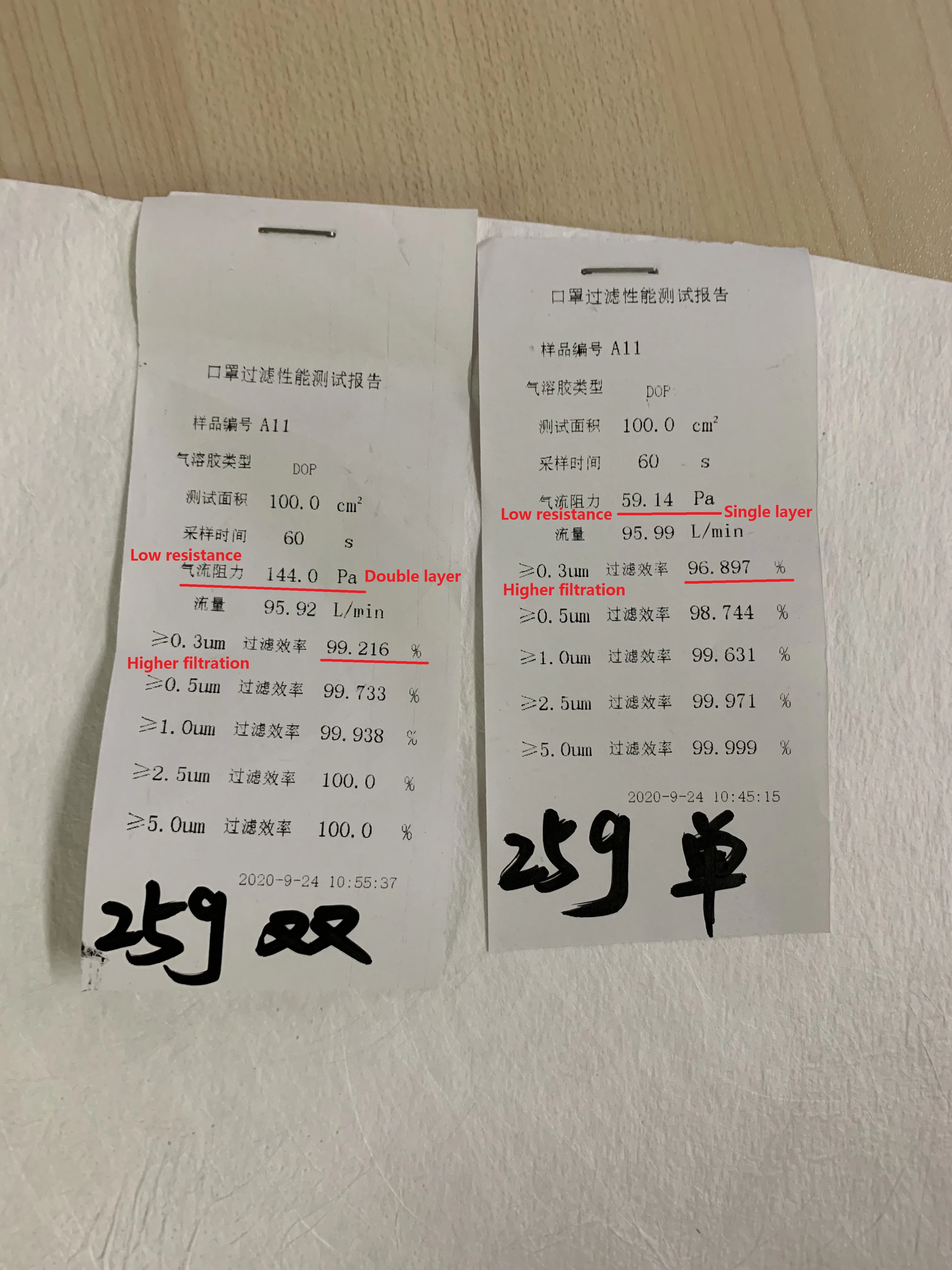 Resistance | <70~100 Pa (single layer); <210Pa (Double layers ) on 95L/Min | ||||||