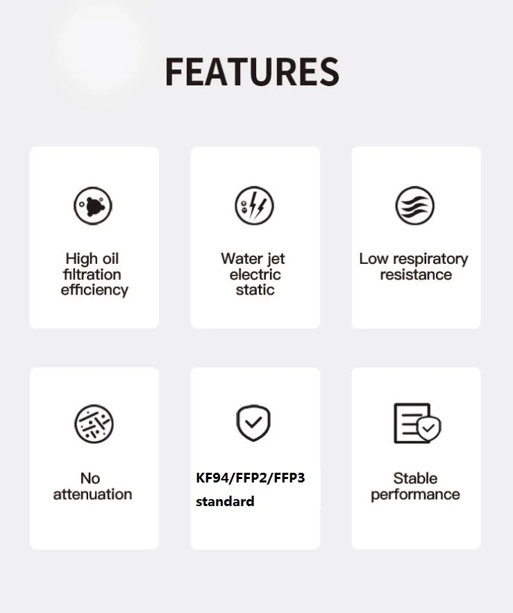 Raw material | 100% Polypropylene (PP) + Electret Masterbatch | ||||||