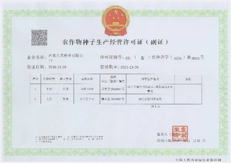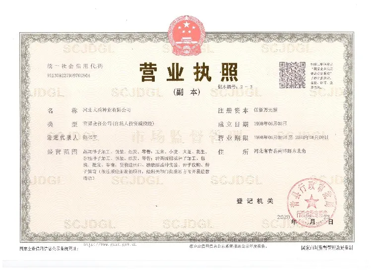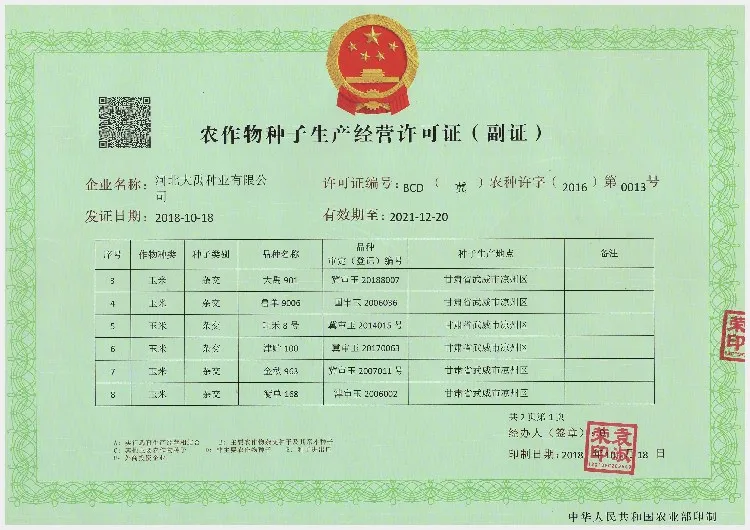 Established in 1989, Dayu Seed Industry Co.,Ltd. has been specialized in seeds breeding, reproduction and selling for more than 30 years. Based on our business philosophy “plant life, cultivate future”, we regard every seed as a responsibility for our customers and the whole society. We also believe that customer demand is a crucial driving force for the development of a company. Therefore our company has not only adhered to the market oriented principle, but also made great efforts in better after-sales service. We provide our customers high-quality seeds with required legal qualification certificates and the after-sales consultation regarding to crop planting and management skills. We have actively participated in the industry exchanges and promotion activities. We sincerely welcome our customers at home and abroad to visit our factory and we are looking forward to establishing long-term partnership with our esteemed customers.