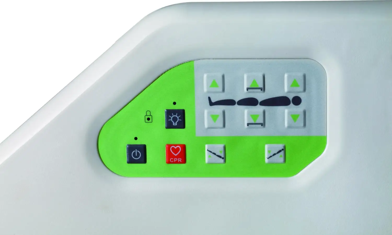 Function | Nursing remote control with locker/ Backrest tilting from 0°to 80°/ Footrest tilting from 0° to 45°/ Sit position function/ Hi-lo function/ Side rail Controller/ Electric emergency stop+ Manual emergency stop/ Backrest X-ray/ backrest angle indicator/ Whole bed angle indicator/ Bumper wheels/ Back-up battery/ Electric CPR , Manual CPR |