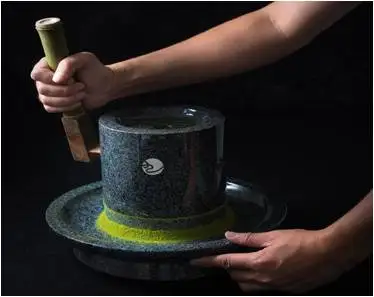 At a low temperature, tencha is then slowly stone ground into an emerald green fine powder, and that is what being called “Matcha”.The average particle size of Matcha is only 3 micrometers. This ultramicro powder can be quickly dissolved in hot water with no precipitation. Due to its brilliant green liquor color, mellow tast, and long-tasting fragrance, Matcha is named as the