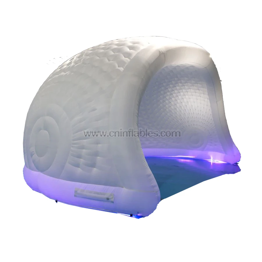 You are looking for inflatable photo booth tent, LED lighting tent, you are right places at Orient Inflatables company, we have dome tent, igloo, canopy, arch tent, spider tent, half dome tent, tent booth, hot seal tent and continuous blowing tent etc. The colors and logo printing is made upon of requirements.