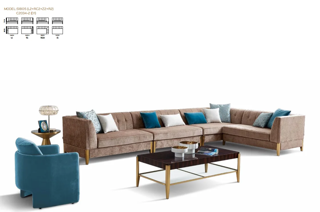 Modern Living Room Furniture Wooden Leg Corner Folding Sofa Couch Set