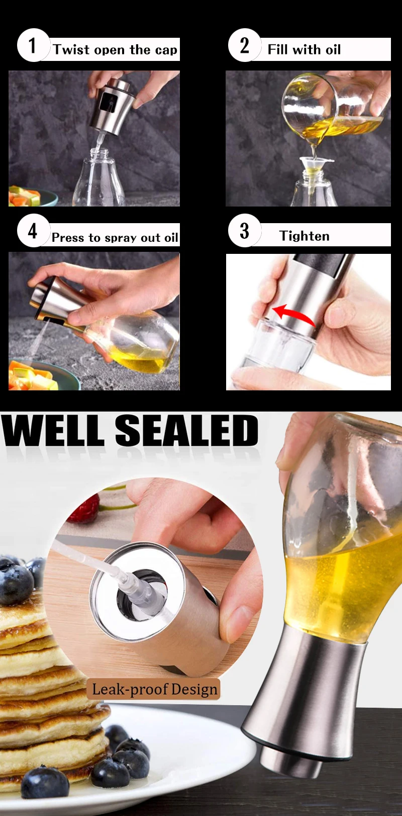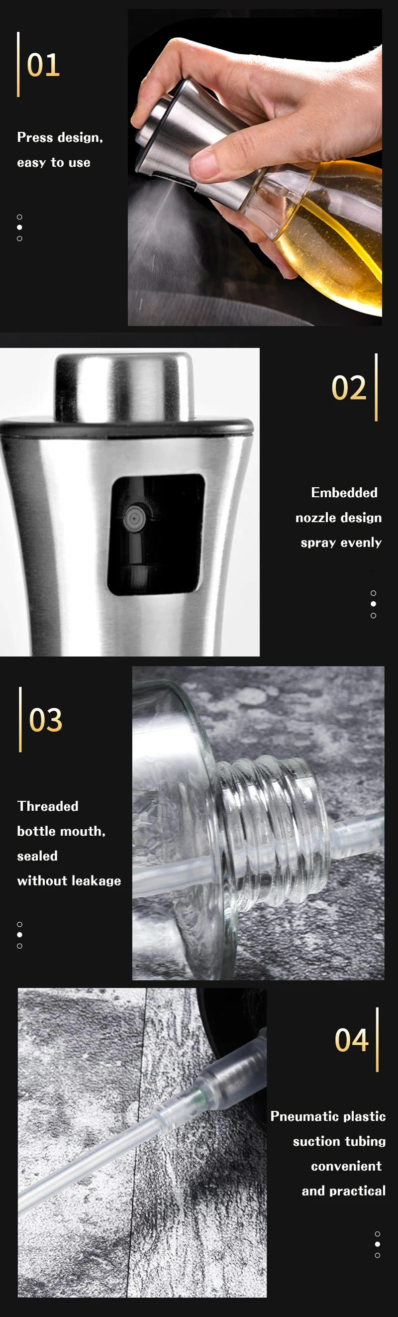 Iterm Name | Amazon top seller kitchenware Stainless Steel Oil Bottle Barbecue Fuel Injector Soy Sauce Vinegar Sprayer Press Oil Bottle |