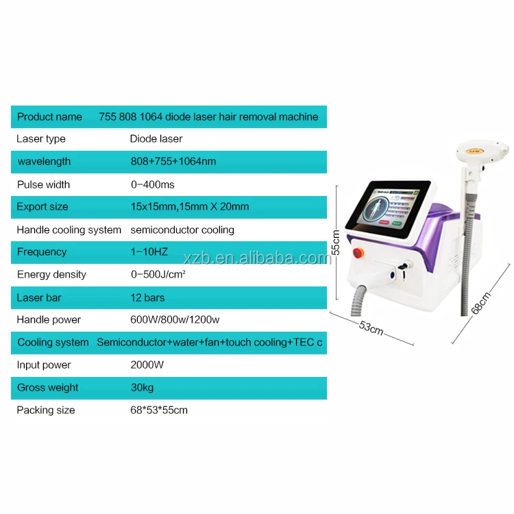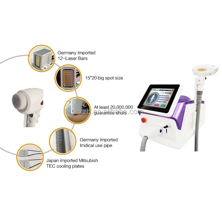 1) 12golden laser bars higher power to make sure the permanent painless hair removal effect. More than 200 0000 times flash 2) TEC condenser, we use TEC technology to make the cooling of the water,as you know, the 808 hair removal equipment have strict requirement for the water temperature and water flow,TEC condenser and imported water pump make sure the diode lase hair removal work continuously. 3)Micro-channel technology –Micro cooling system makes diode module working much safer. 4)High quality spare parts --all the core components are imported . Germany imported micro-channel laser bars. Germany imported semiconductor cooling system, insures the machine continuously working 24 hours without any stop. USA CPC water connector & Germany Harting electronic connector. Italy water pump, no noise and larger water flow for better cooling, prolong laser life. 5) Newly designed diode laser handle, more stable and convenient to use. 6) High quality water filter and testmeter, insures the high purity for the water, prolong the lifetime of laser bar. 7) Long continuously working one day with constant temperature 8) Sliding treatment way, spot size 15*15mm, remove hair fastly and effectively 9) Automatical alarm system: once any problems happens, machine will stop working immediately. Protect the patient and machine firstly.