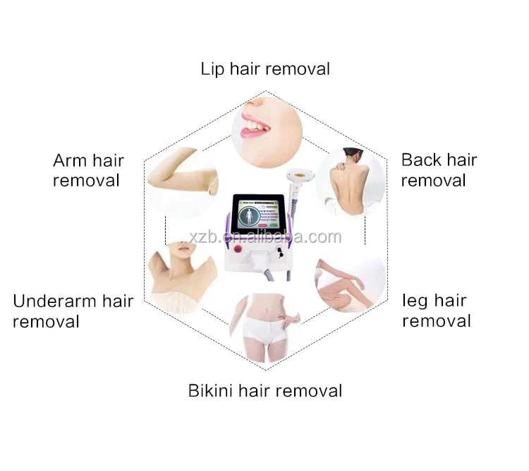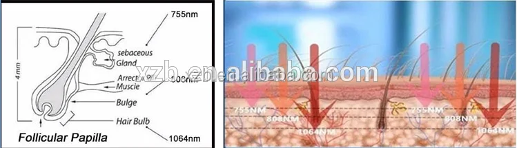 808nm, 1064nm, 755nm three wavelength diode laser penetrates into the dermis, and is absorbed by the targeted melanin in the hair follicles. This will form enough thermal energy to destroy the targeted follicular epithelium because of the laser-induced photothermal effect.In contrast, the surrounding skin tissue is spared due to lack of melanin. This way, the surrounding skin remains intactness, while the hair follicles are selectively affected, which leads to non-invasive permanent hair removal.